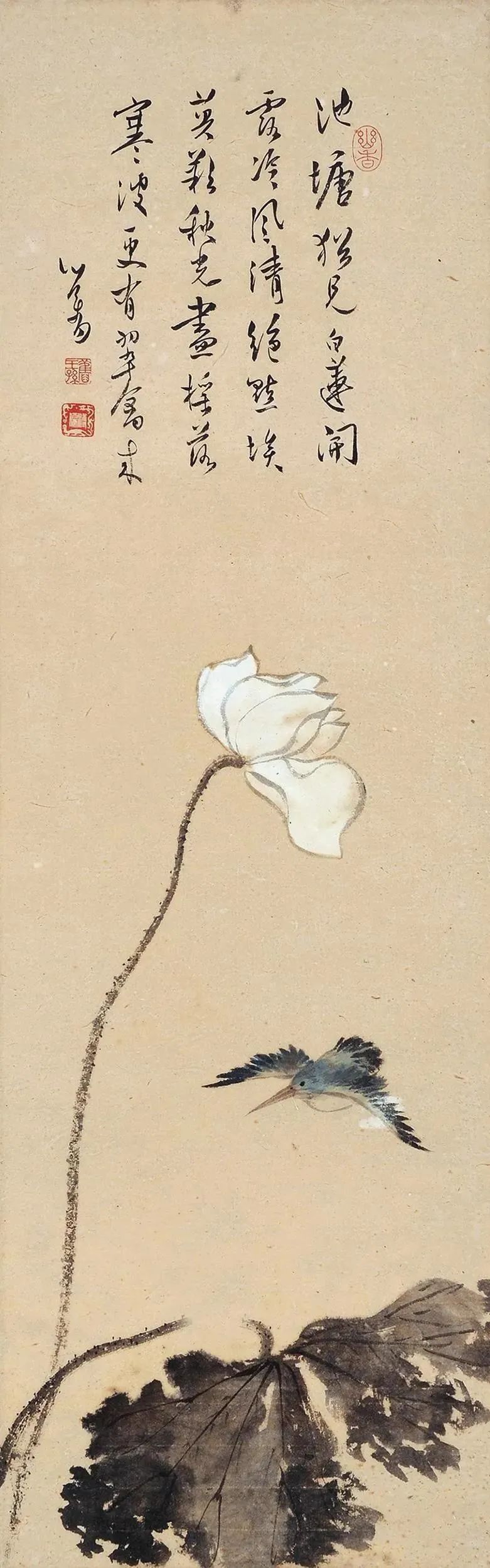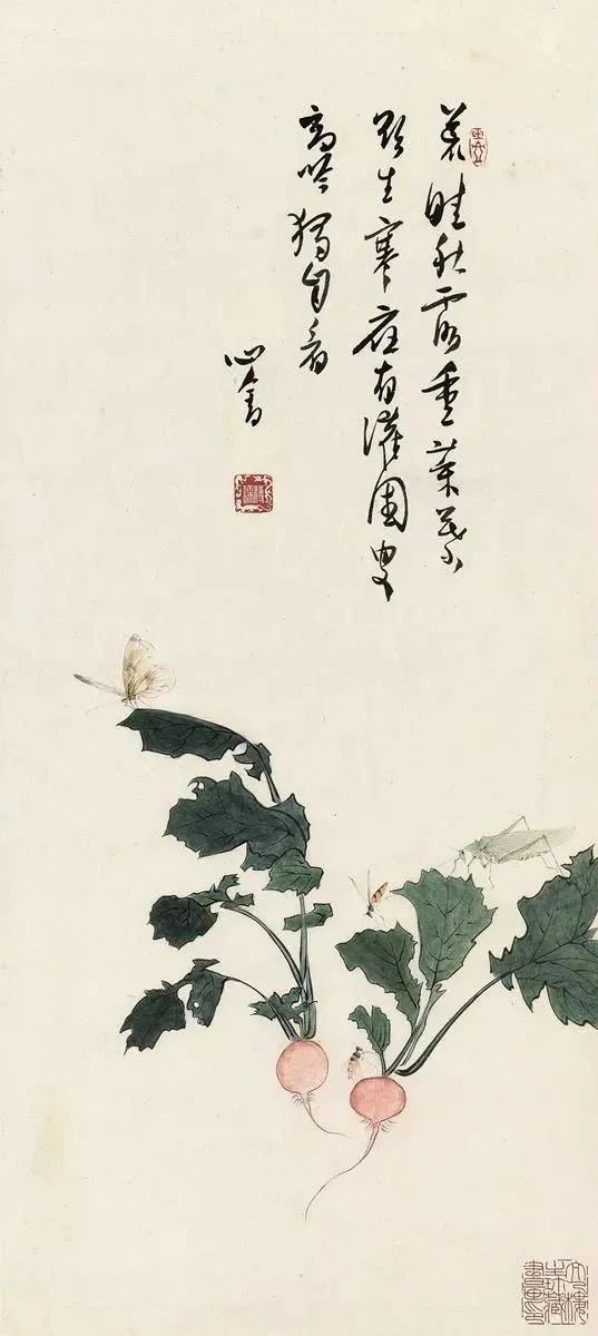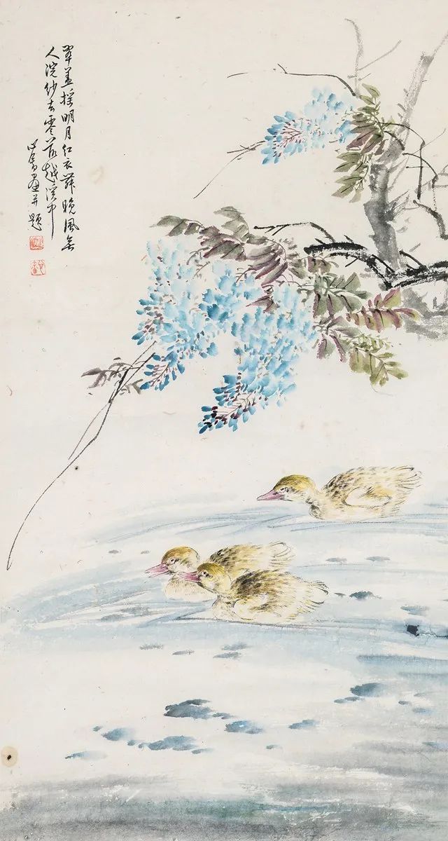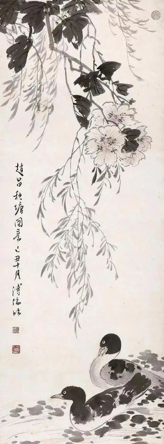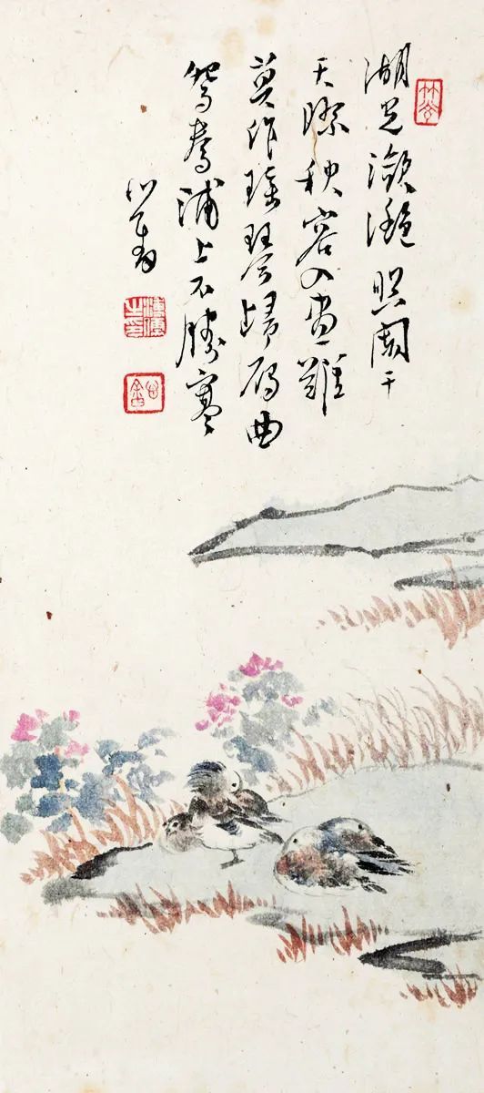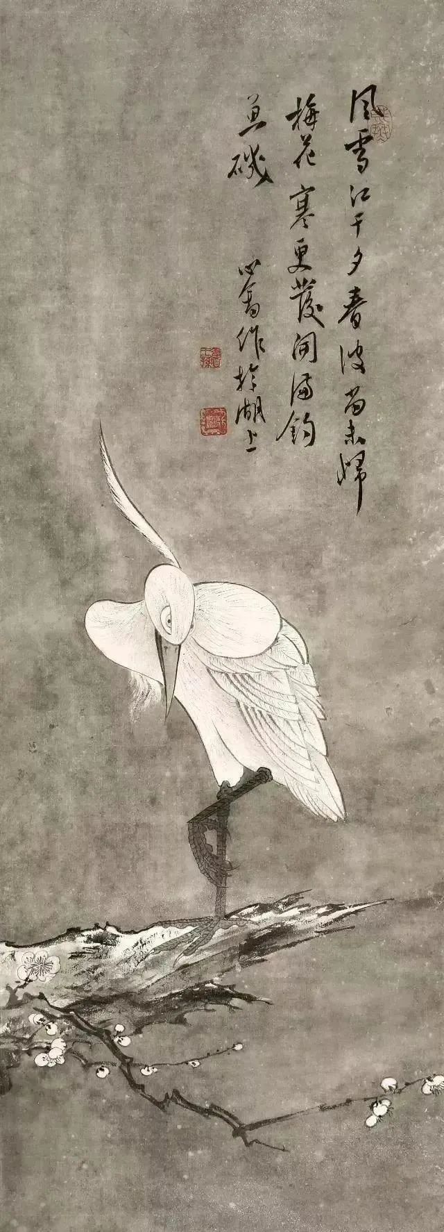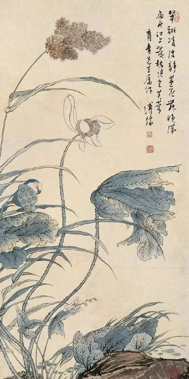 他的画作在山水、花鸟、水族、东谈主物等题材上无一不备,时常以山水和东谈主物较为易见,今天沿途来望望他荒凉的古意花鸟画。