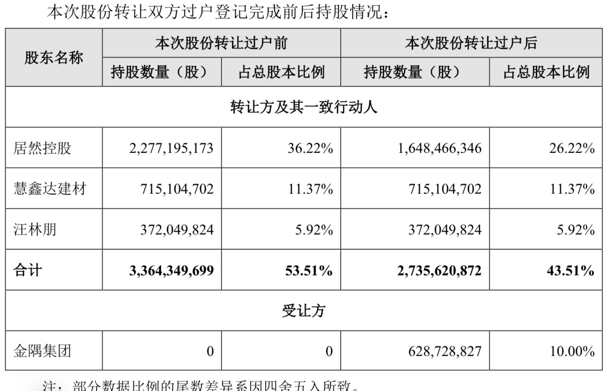 本次股份转让完成后,金隅集团握有尽然之家628728827股,占公司总股本的10%,成为公司第三大鼓舞。